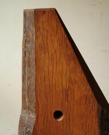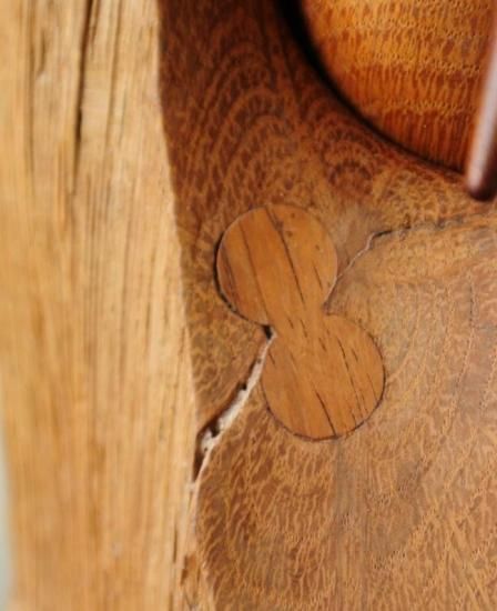 ひび部分がこれ以上広がらないように飾りを兼ねて契ぎりという埋木が施されています。