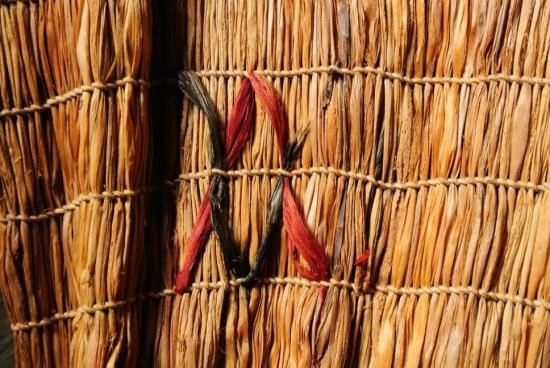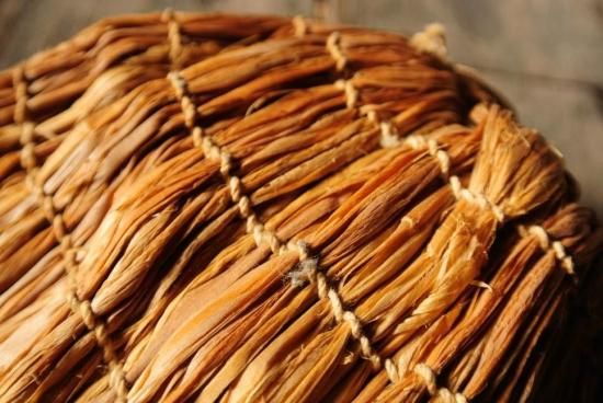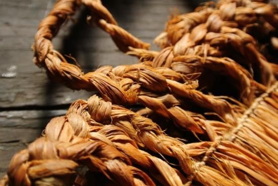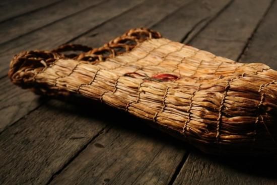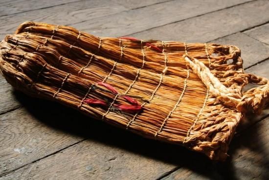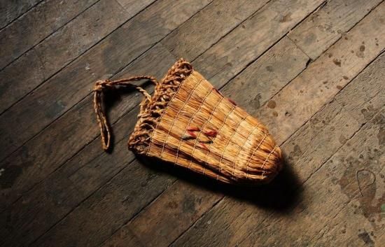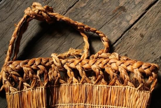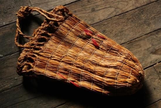 樹皮を紐状にして編み込んだ袋(生活用具)になります。
